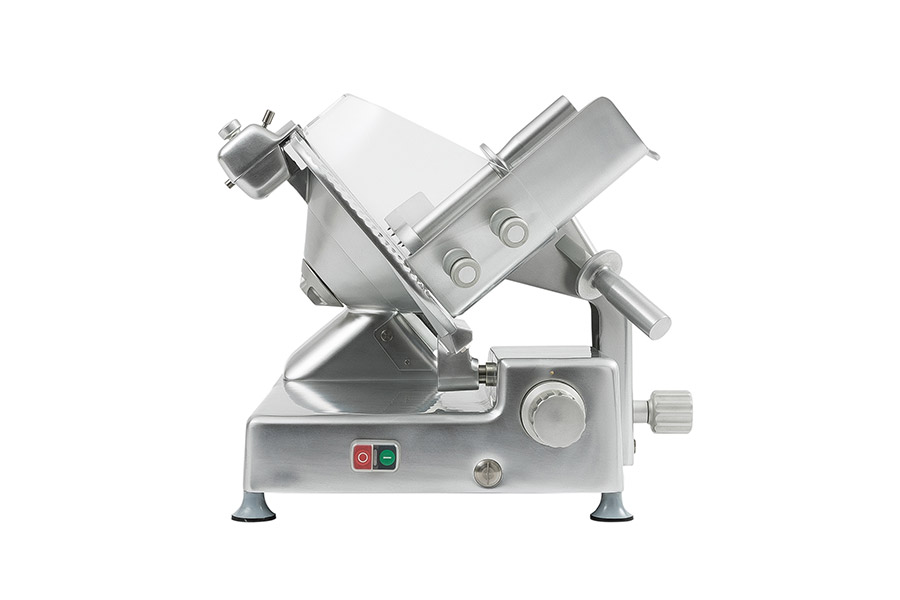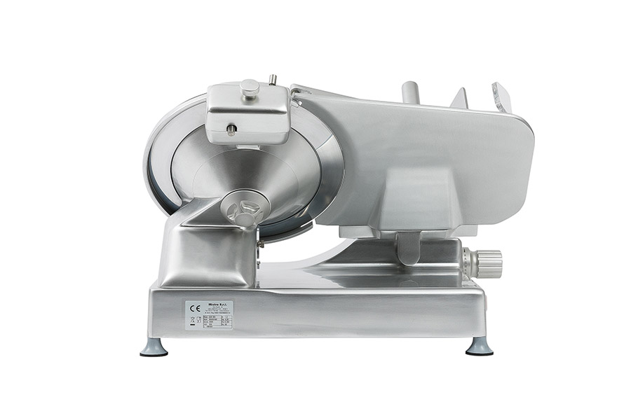 AFFETTATRICE IN LEGA DI ALLUMINIO, LUCIDATA ED ANODIZZATA, DOTATA DI TUTTI I DISPOSITIVI DI PROTEZIONE RICHIESTI DALLA NORMATIVA VIGENTE, AFFETTA CON PRECISIONE E SEMPLICITÀ.