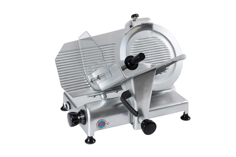 AFFETTATRICE IN LEGA DI ALLUMINIO, LUCIDATA ED ANODIZZATA, DOTATA DI TUTTI I DISPOSITIVI DI PROTEZIONE RICHIESTI DALLA NORMATIVA VIGENTE, AFFETTA CON PRECISIONE E SEMPLICITÀ.