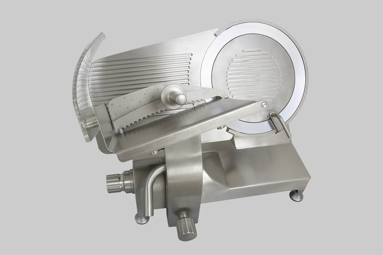 AFFETTATRICE IN ACCIAIO INOX, DOTATA DI TUTTI I DISPOSITIVI DI PROTEZIONE RICHIESTI DALLA NORMATIVA VIGENTE, AFFETTA CON PRECISIONE E SEMPLICITÀ.