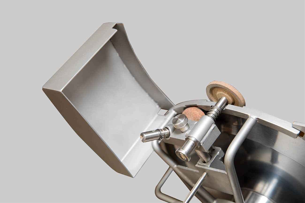 Affilatoio incorporato con mole di qualità; garantisce una perfetta affilatura della lama e un taglio netto e pulito del prodotto;