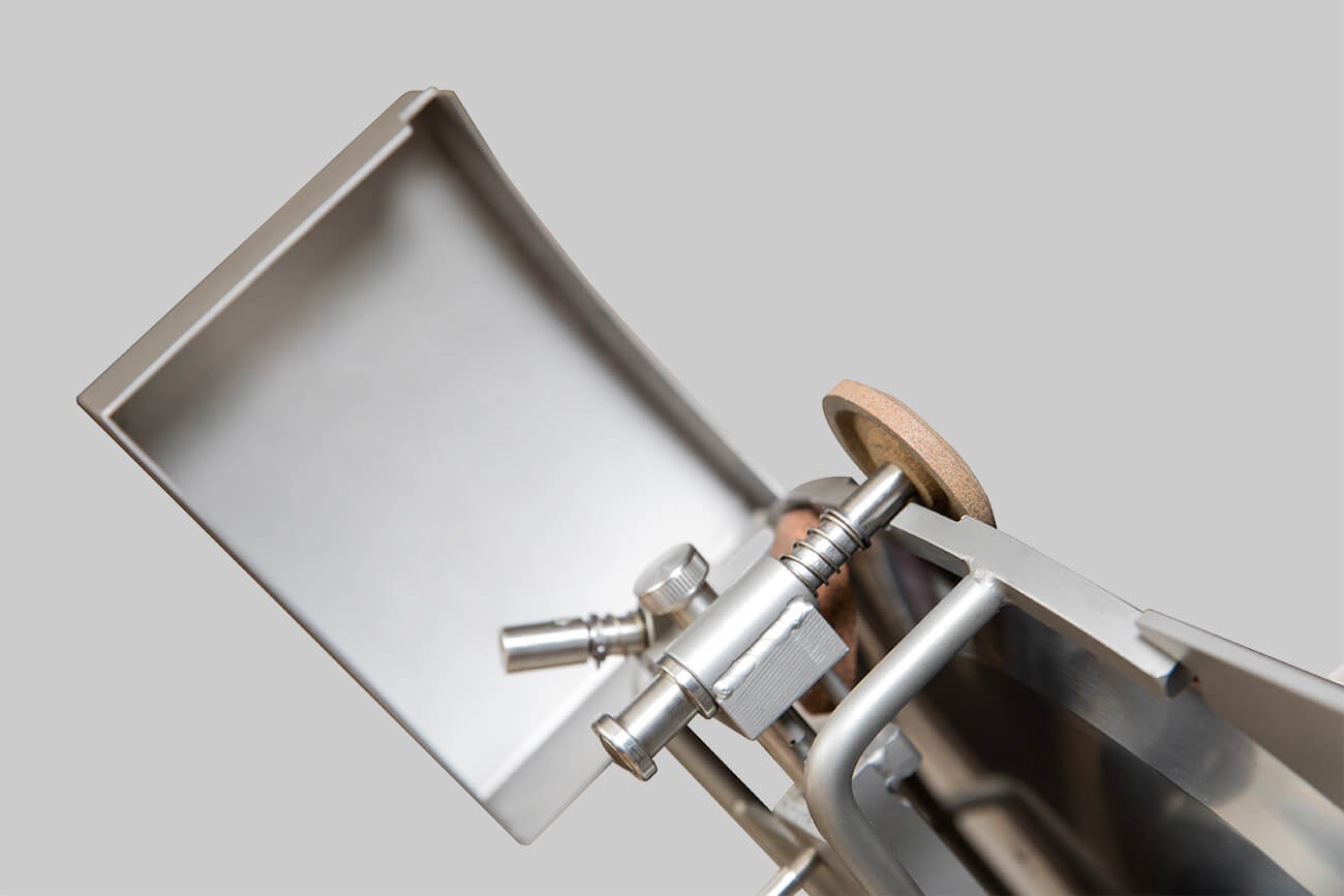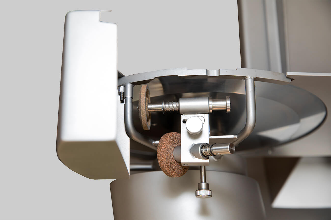 Affilatoio incorporato con mole di qualità; garantisce una perfetta affilatura della lama e un taglio netto e pulito del prodotto;