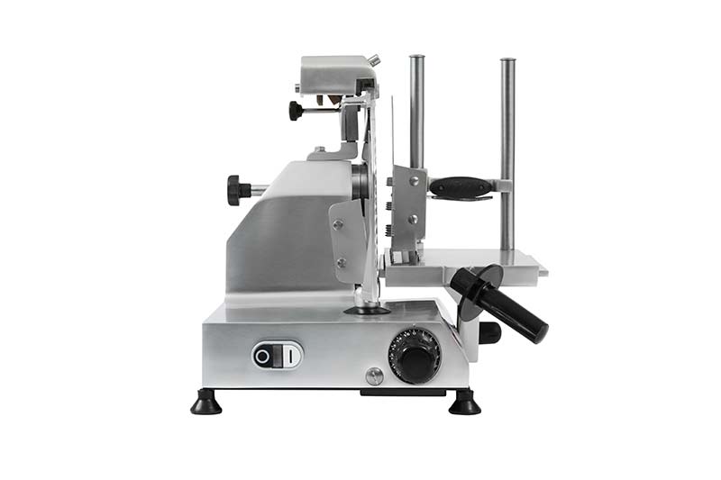 AFFETTATRICE IN LEGA DI ALLUMINIO, LUCIDATA ED ANODIZZATA, DOTATA DI TUTTI I DISPOSITIVI DI PROTEZIONE RICHIESTI DALLA NORMATIVA VIGENTE, AFFETTA CON PRECISIONE E SEMPLICITÀ.