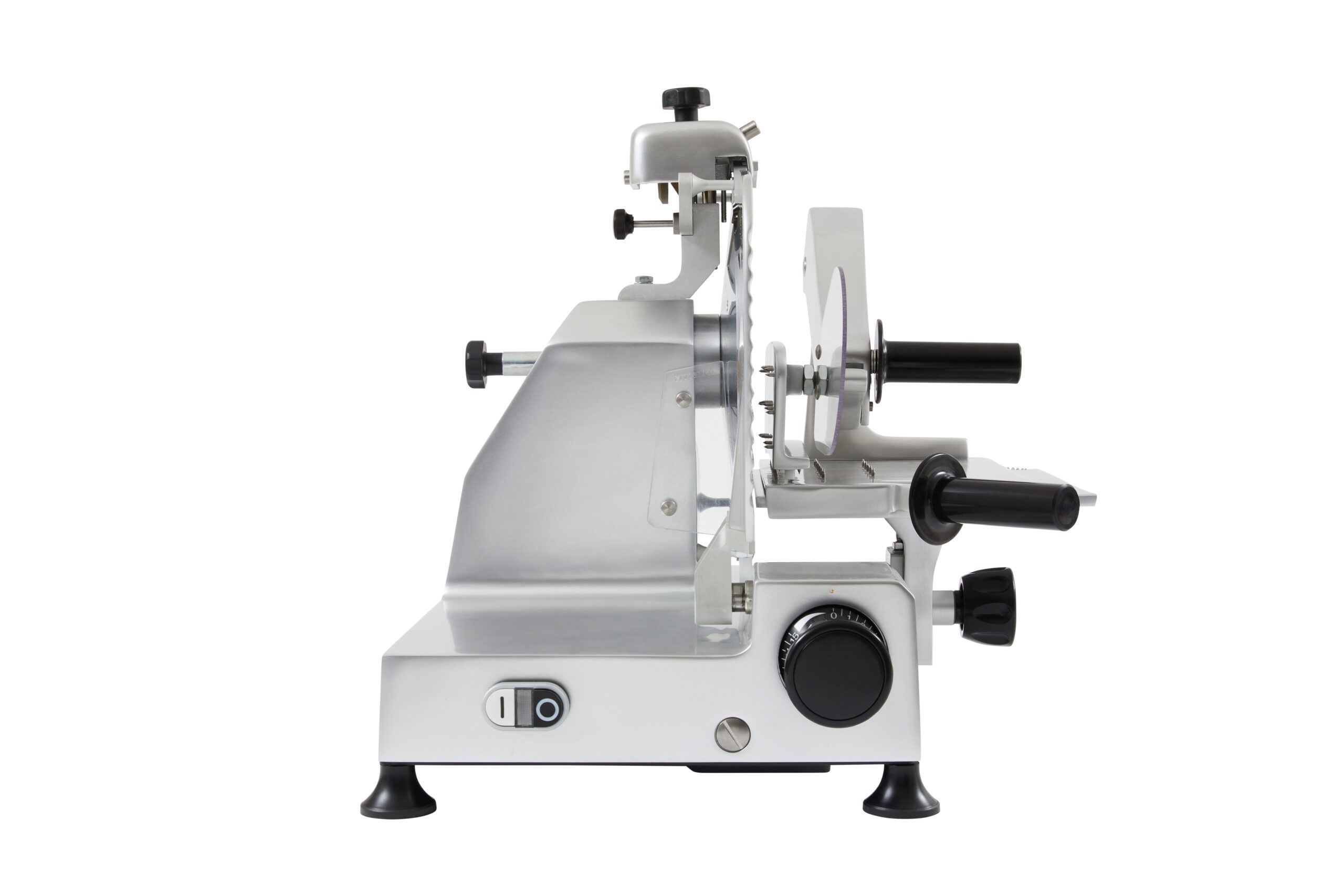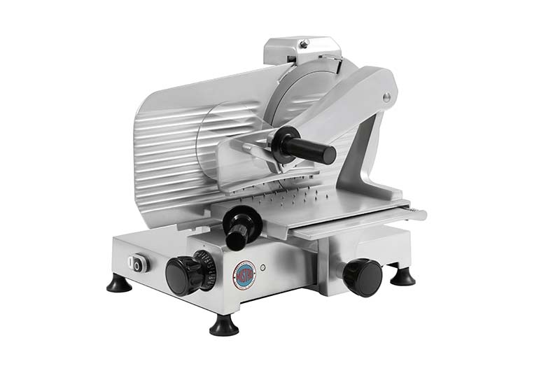 AFFETTATRICE IN LEGA DI ALLUMINIO, LUCIDATA ED ANODIZZATA, DOTATA DI TUTTI I DISPOSITIVI DI PROTEZIONE RICHIESTI DALLA NORMATIVA VIGENTE, AFFETTA CON PRECISIONE E SEMPLICITÀ.