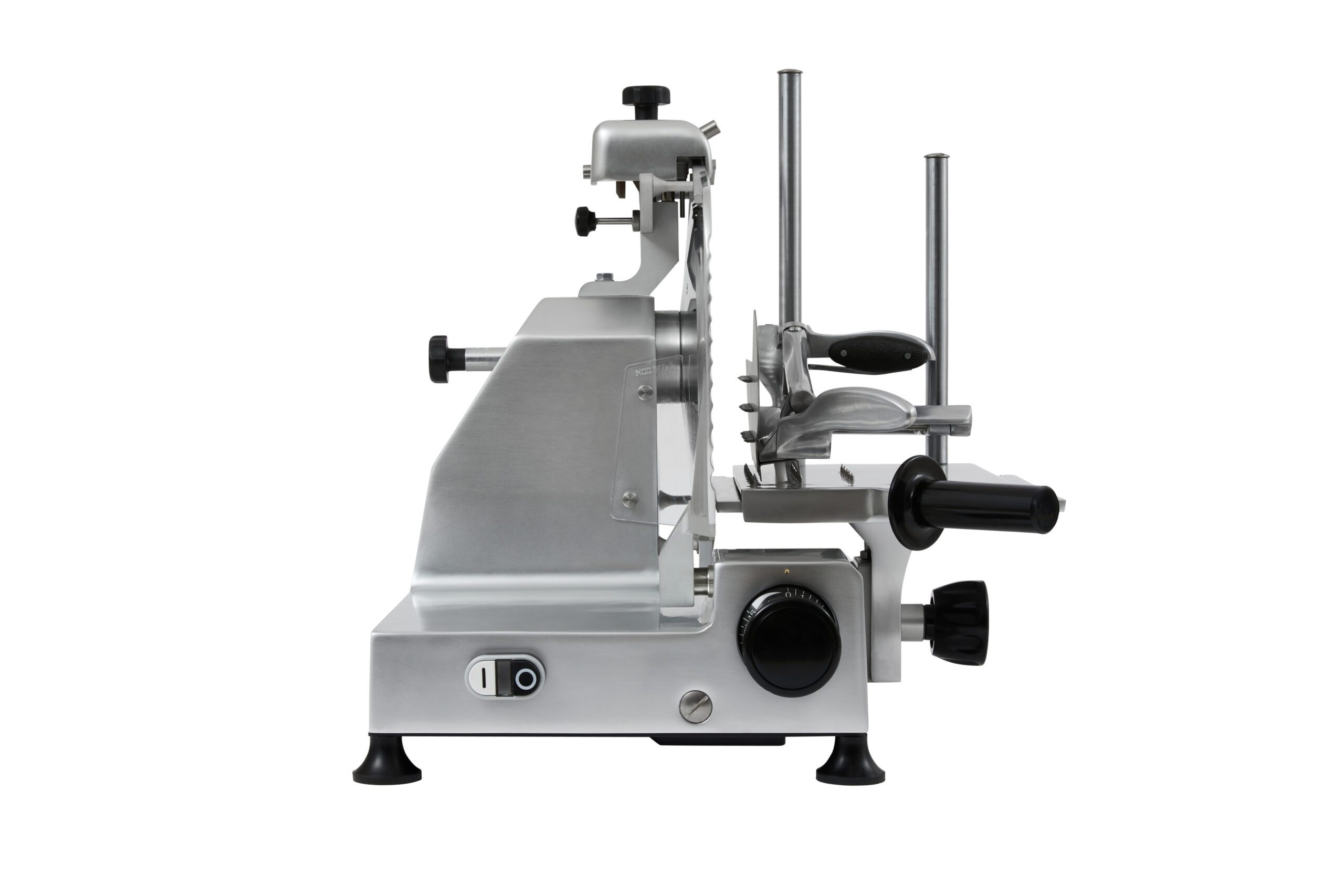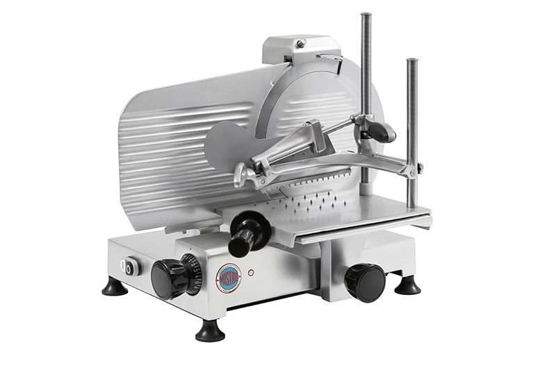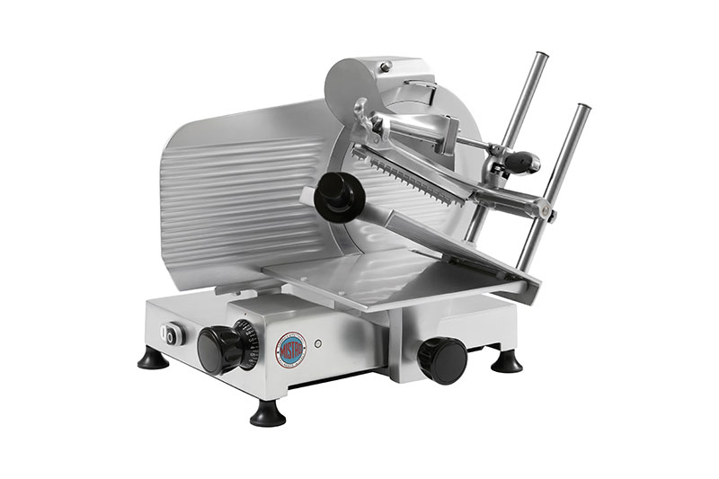 AFFETTATRICE IN LEGA DI ALLUMINIO, LUCIDATA ED ANODIZZATA, DOTATA DI TUTTI I DISPOSITIVI DI PROTEZIONE RICHIESTI DALLA NORMATIVA VIGENTE, AFFETTA CON PRECISIONE E SEMPLICITÀ.