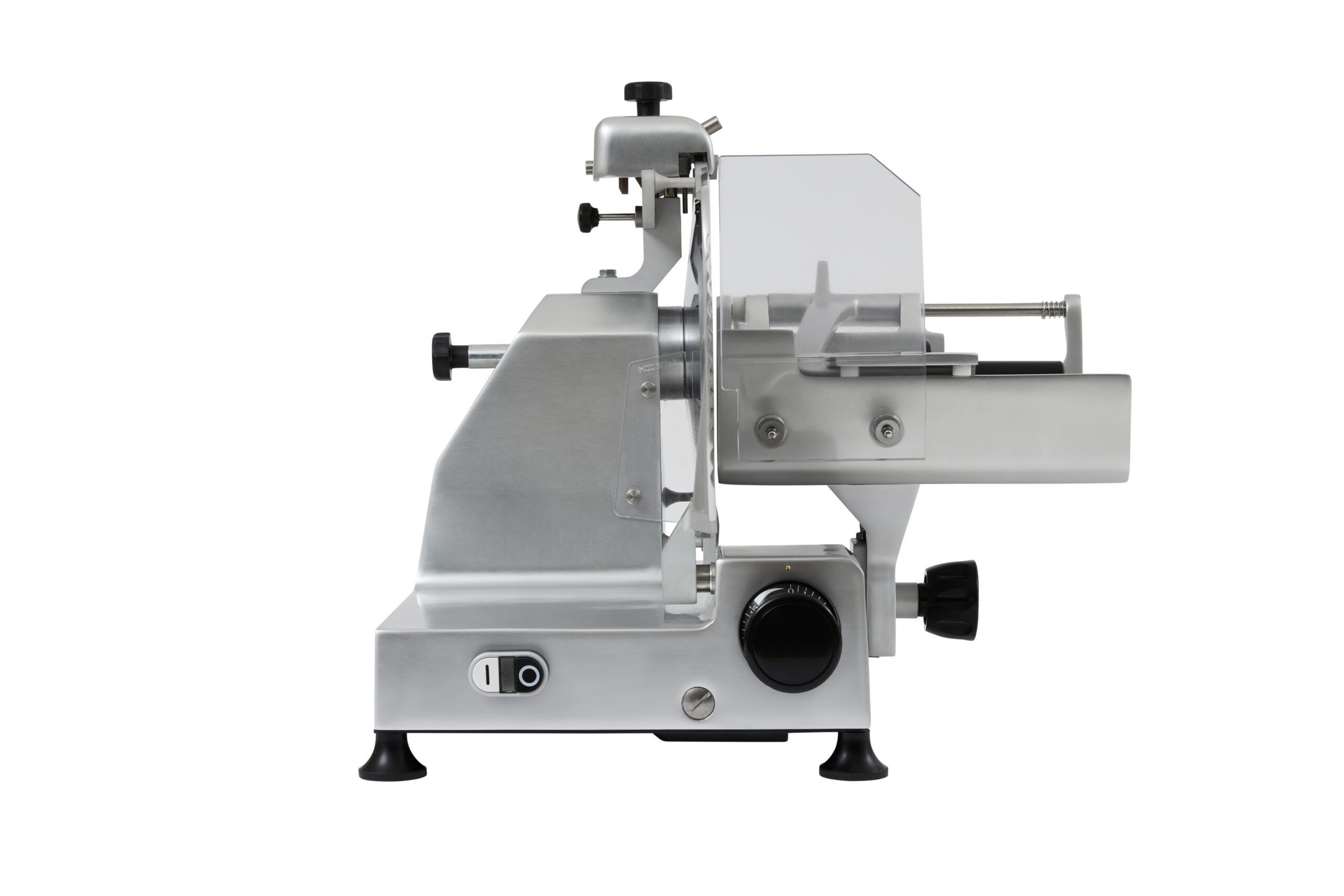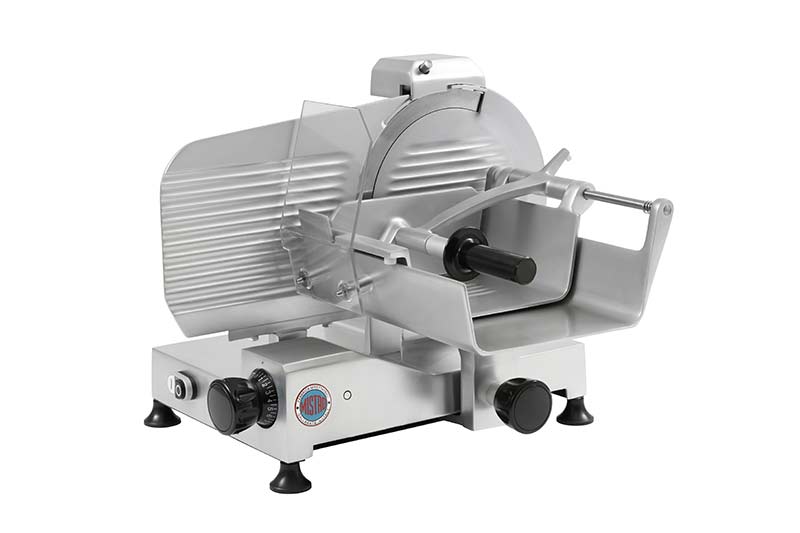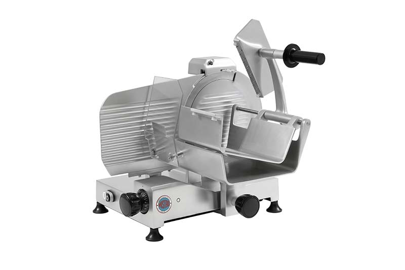 AFFETTATRICE IN LEGA DI ALLUMINIO, LUCIDATA ED ANODIZZATA, DOTATA DI TUTTI I DISPOSITIVI DI PROTEZIONE RICHIESTI DALLA NORMATIVA VIGENTE, AFFETTA CON PRECISIONE E SEMPLICITÀ.