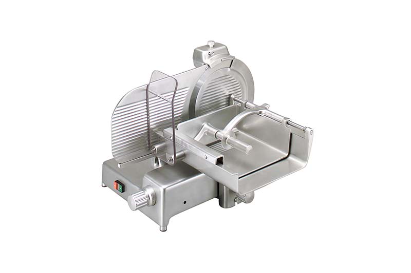 AFFETTATRICE IN LEGA DI ALLUMINIO, LUCIDATA ED ANODIZZATA, DOTATA DI TUTTI I DISPOSITIVI DI PROTEZIONE RICHIESTI DALLA NORMATIVA VIGENTE, AFFETTA CON PRECISIONE E SEMPLICITÀ.